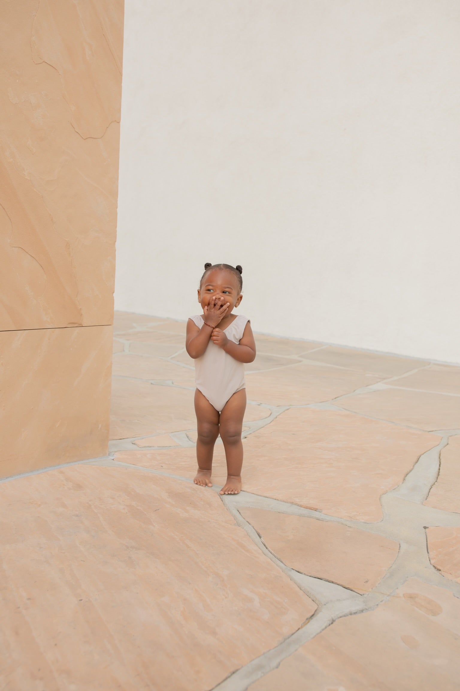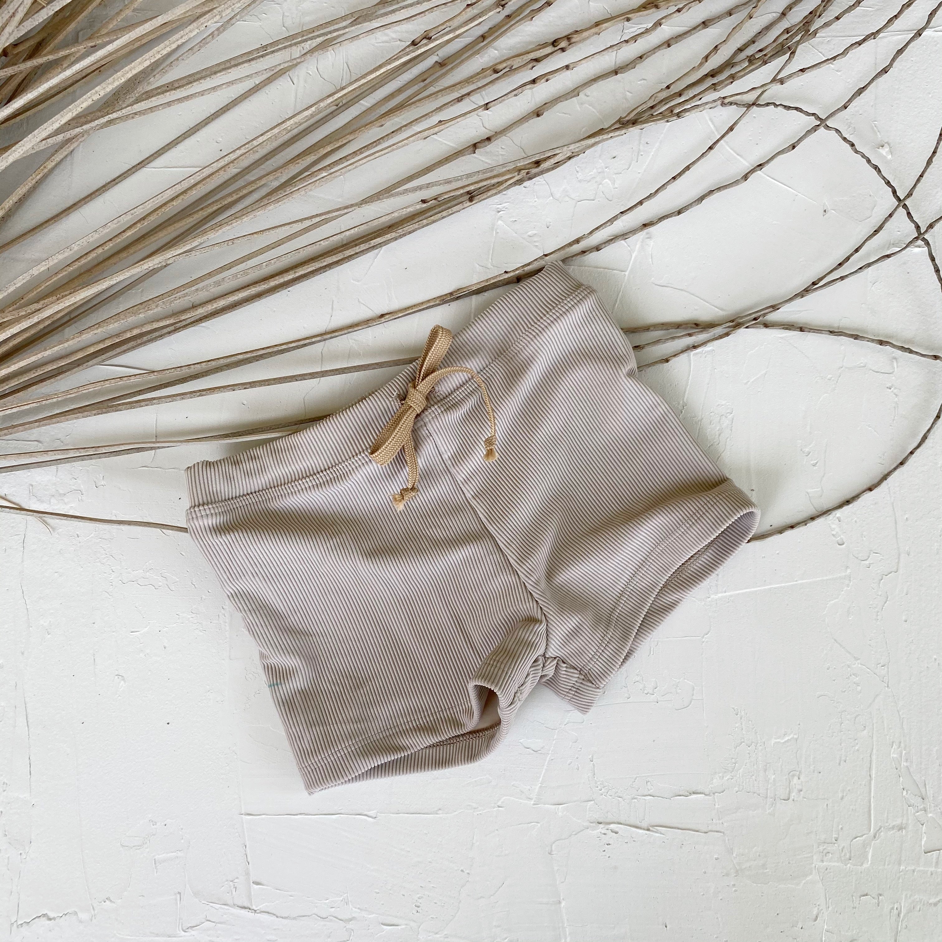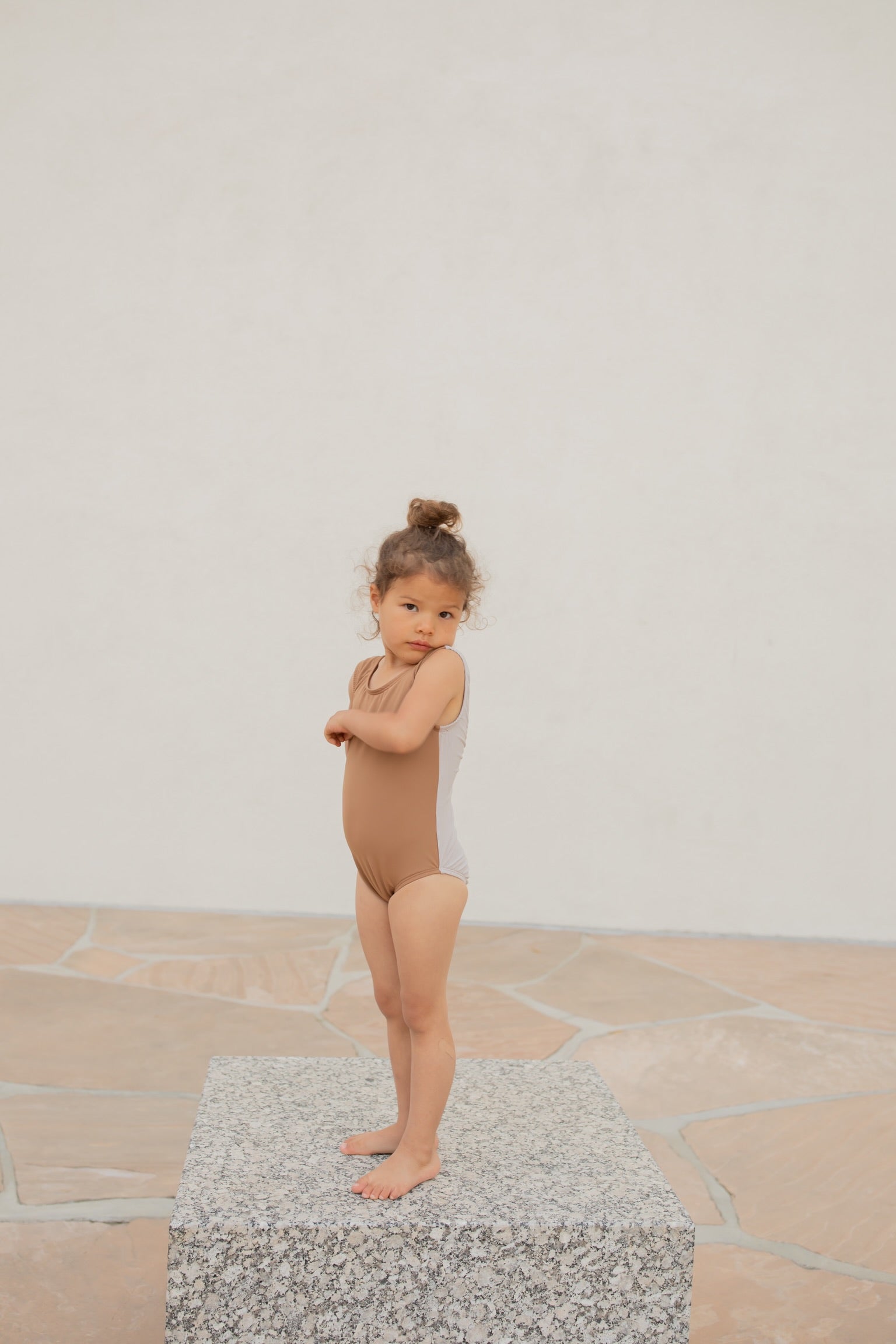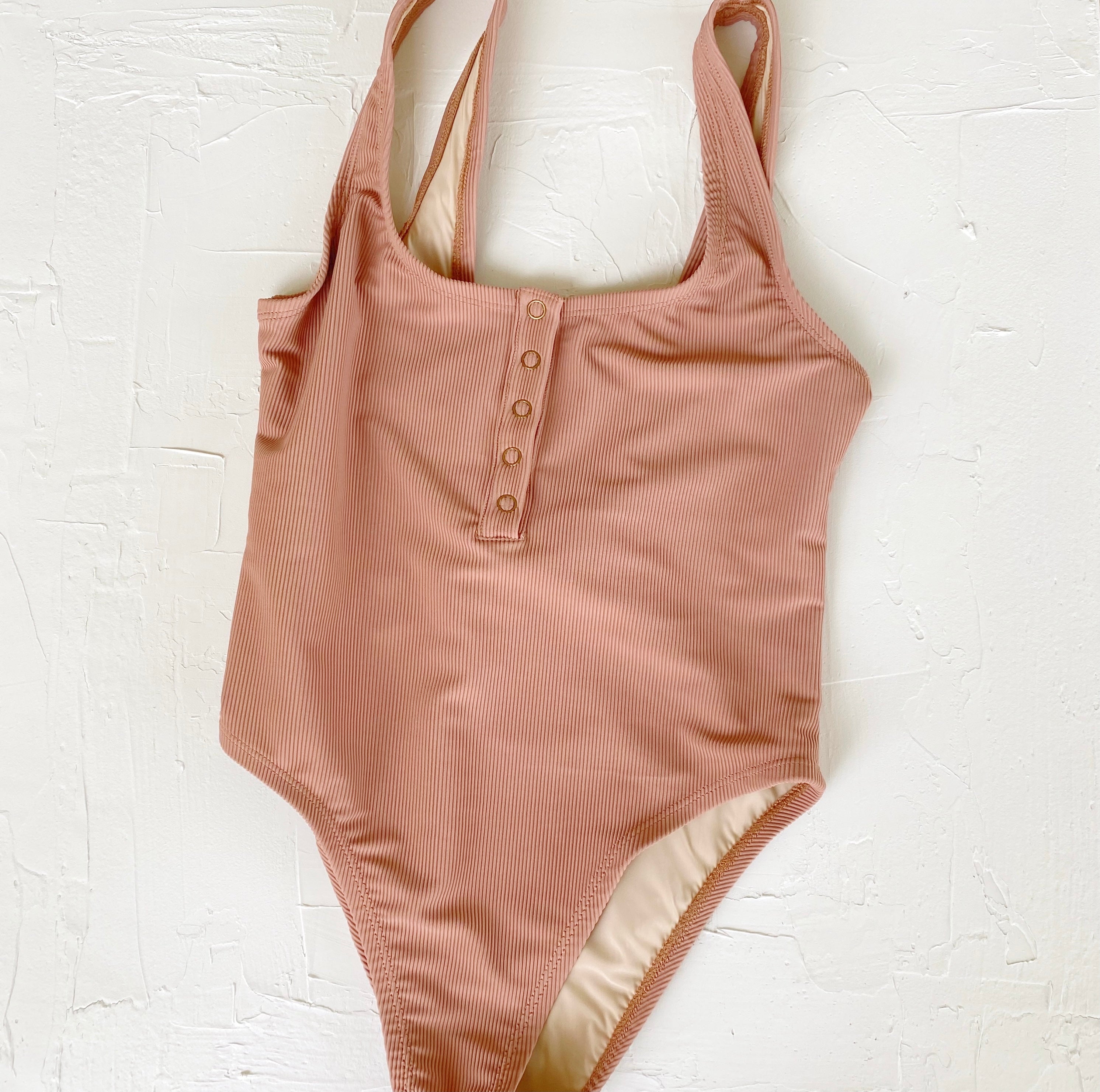 Sunkissed is a beautiful neutral pink that is available in euro shorts, rash guards, on the back of a colorblock girls scoop back one piece (with horizon on the front) and in a ribbed version for the mama snap one piece!